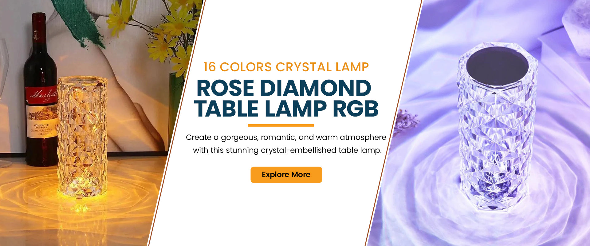 Crystal Diamond Table Lamp RGB 16 Colors with Touch & Remote Control - 21 cm Large Size
