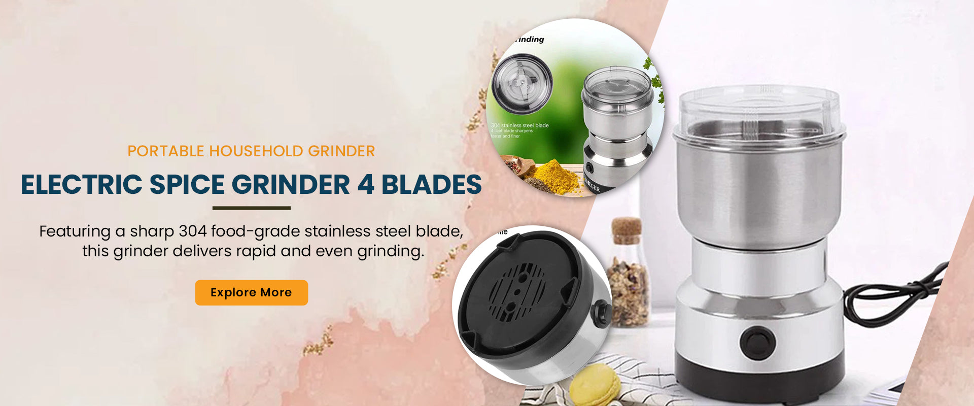 Multi-Purpose RAF Electric Grinder 4 Blades For Spices, Masala, Coffee Grinding Machine 300 Watt - 200 ml